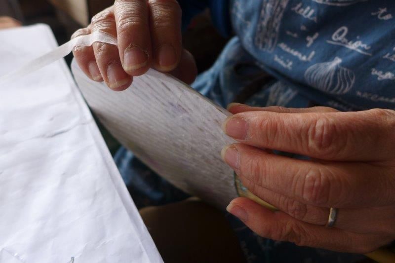 紙と骨の一本一本に糊をたっぷり塗って、はがれないように張り合わせます。